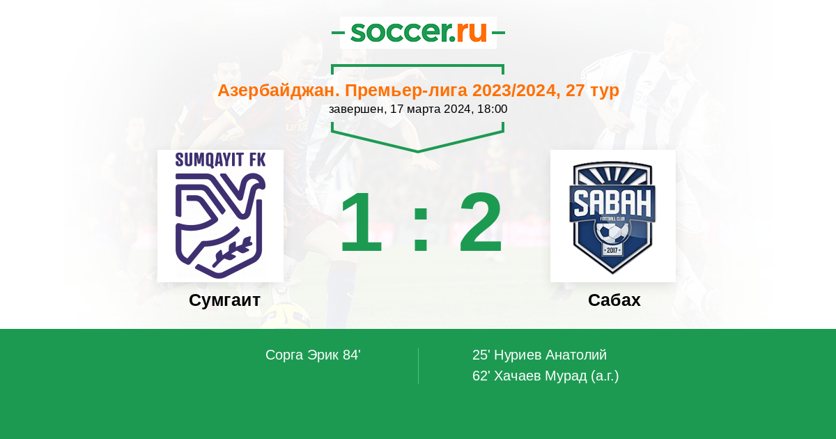 Сумгаит - Сабах: обзор матча 17 марта 2024