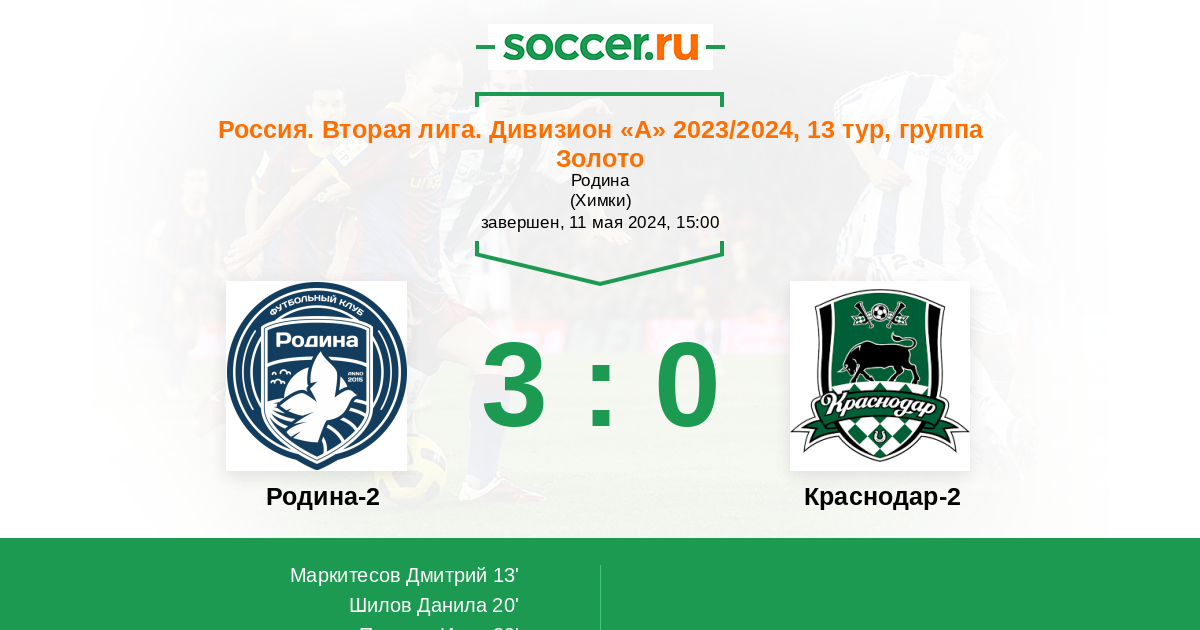 Родина-2 - Краснодар-2: обзор матча 11 мая 2024