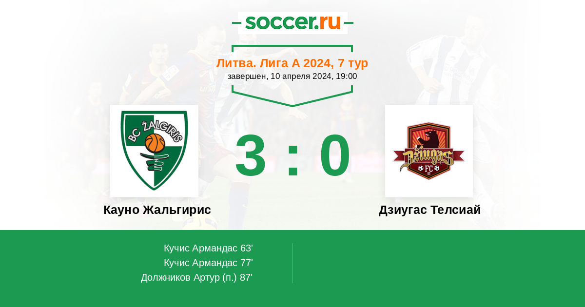 Кауно Жальгирис - Дзиугас Телсиай: обзор матча 10 апреля 2024