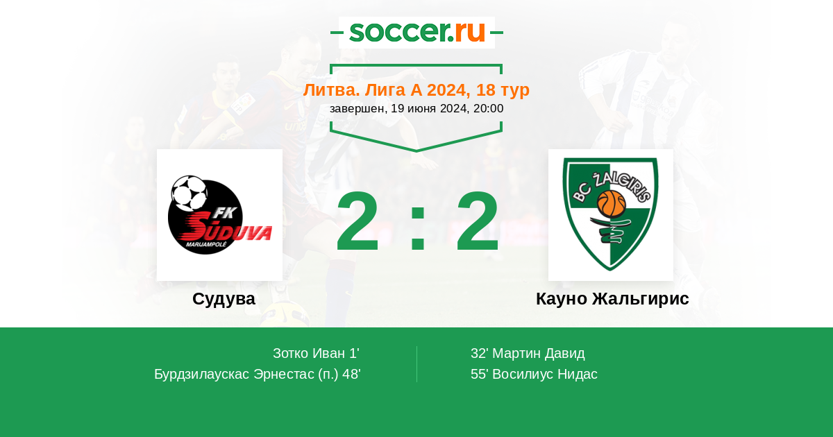 Судува - Кауно Жальгирис: обзор матча 19 июня 2024