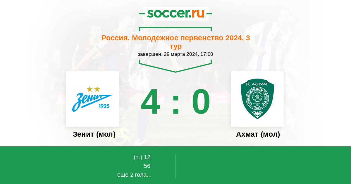 Зенит (мол) - Ахмат (мол): обзор матча 29 марта 2024