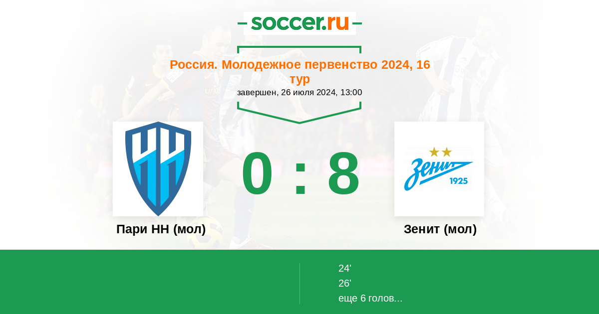 Пари НН (мол) - Зенит (мол): обзор матча 26 июля 2024