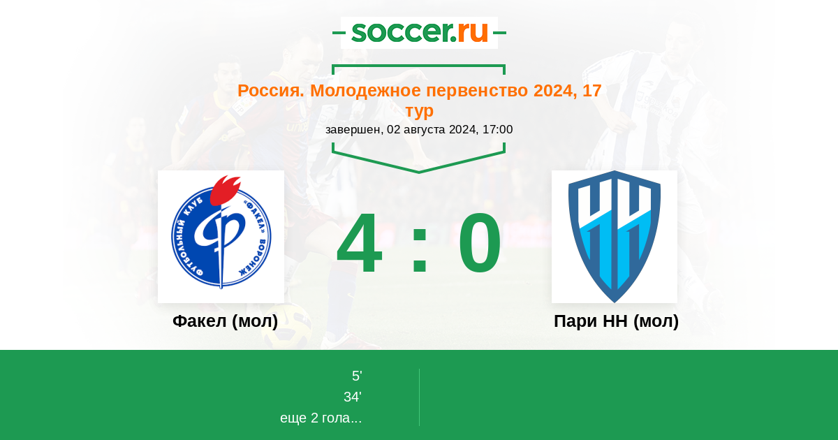 Факел (мол) - Пари НН (мол): обзор матча 2 августа 2024
