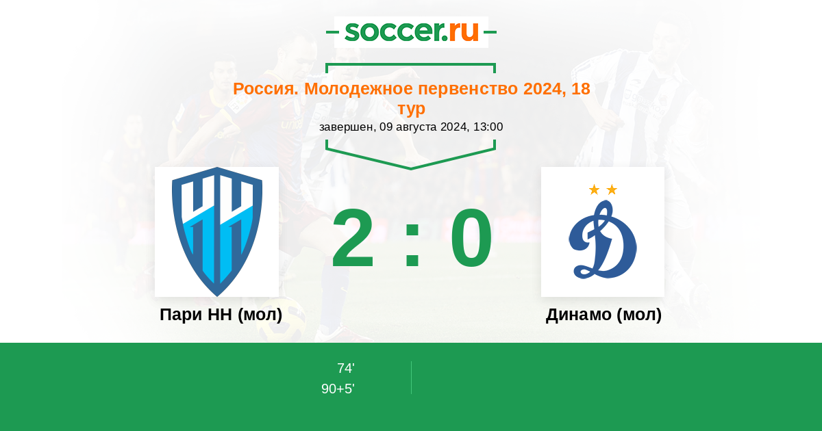 Пари НН (мол) - Динамо (мол): обзор матча 9 августа 2024
