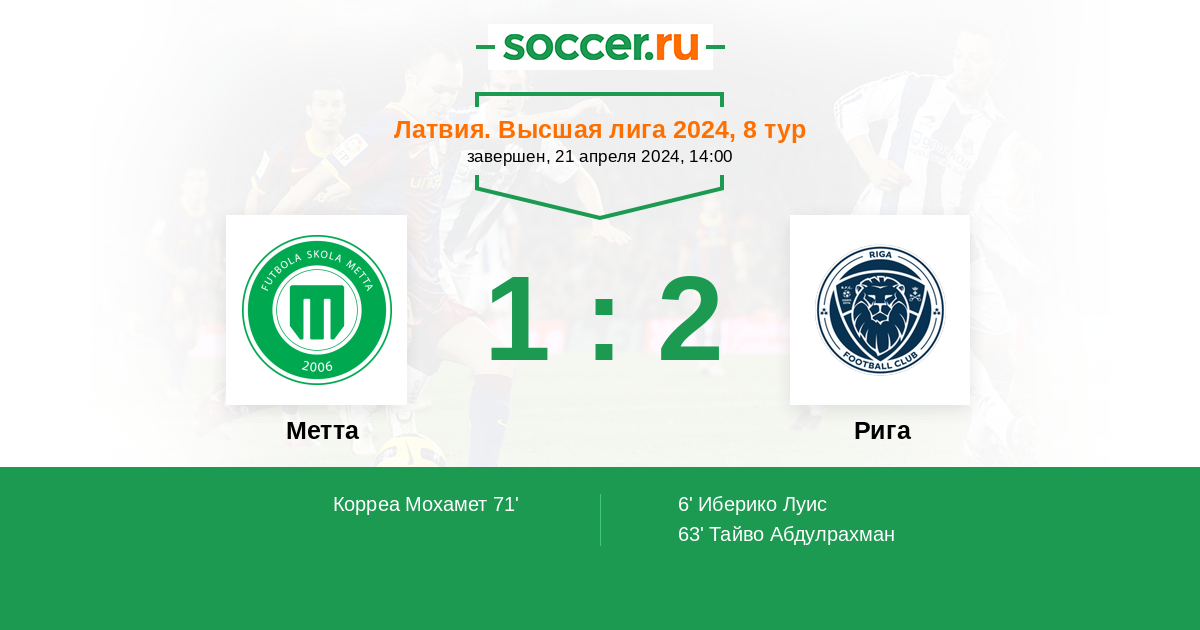 Метта - Рига: обзор матча 21 апреля 2024