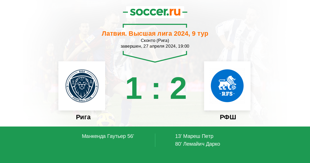 Рига - РФШ: обзор матча 27 апреля 2024