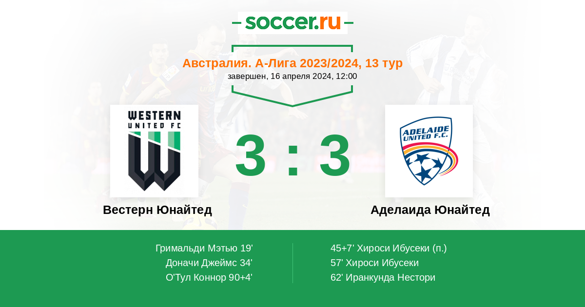Вестерн Юнайтед - Аделаида Юнайтед: обзор матча 16 апреля 2024
