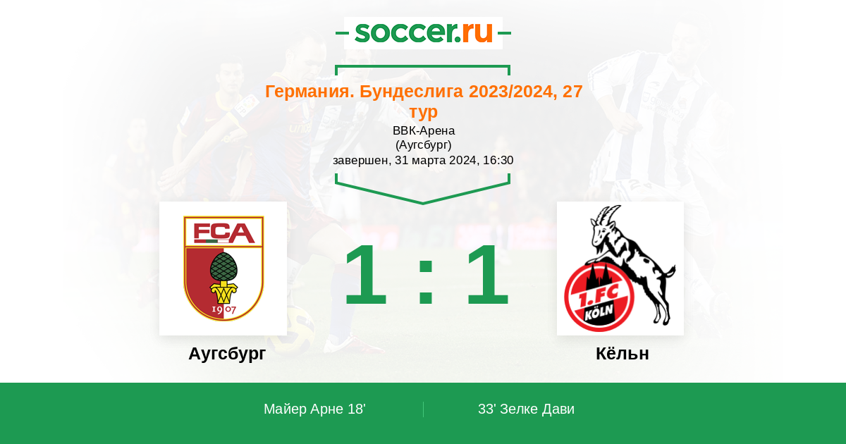 Аугсбург - Кёльн: обзор матча 31 марта 2024