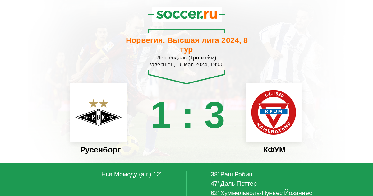 Русенборг - КФУМ: обзор матча 16 мая 2024