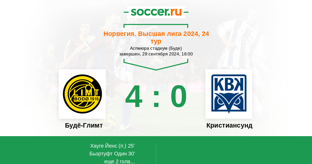 Будё-Глимт - Кристиансунд: обзор матча 29 сентября 2024
