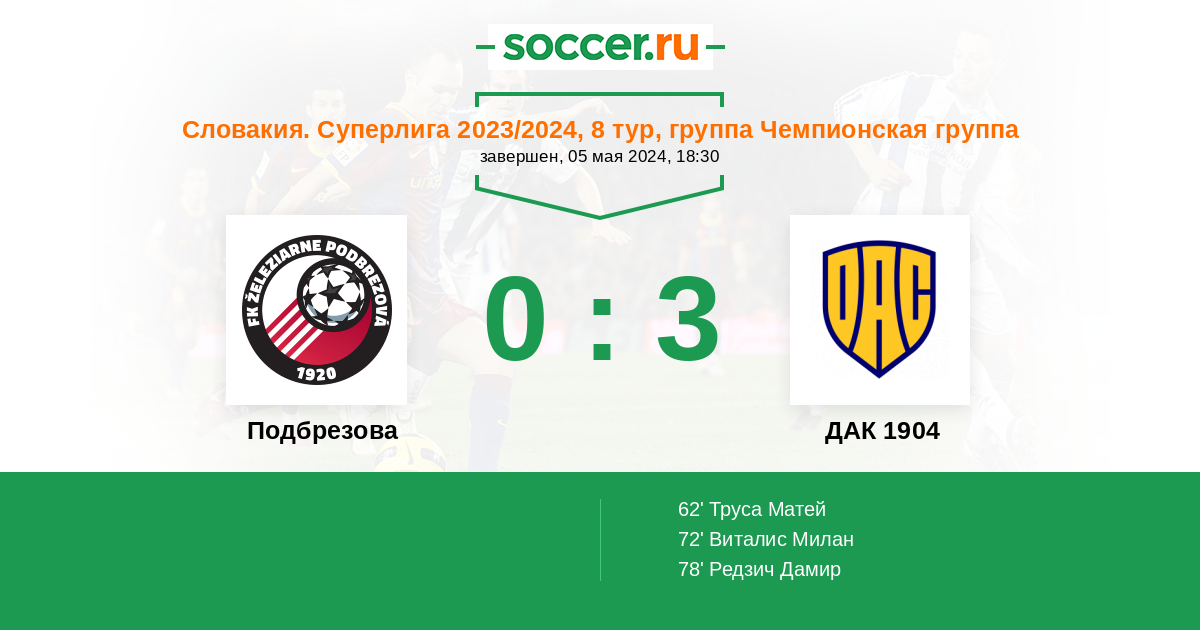 Подбрезова - ДАК 1904: обзор матча 5 мая 2024