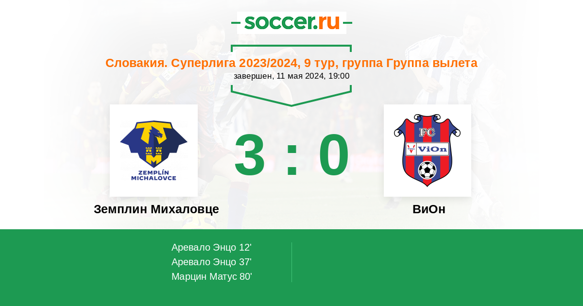 Земплин Михаловце - ВиОн: обзор матча 11 мая 2024
