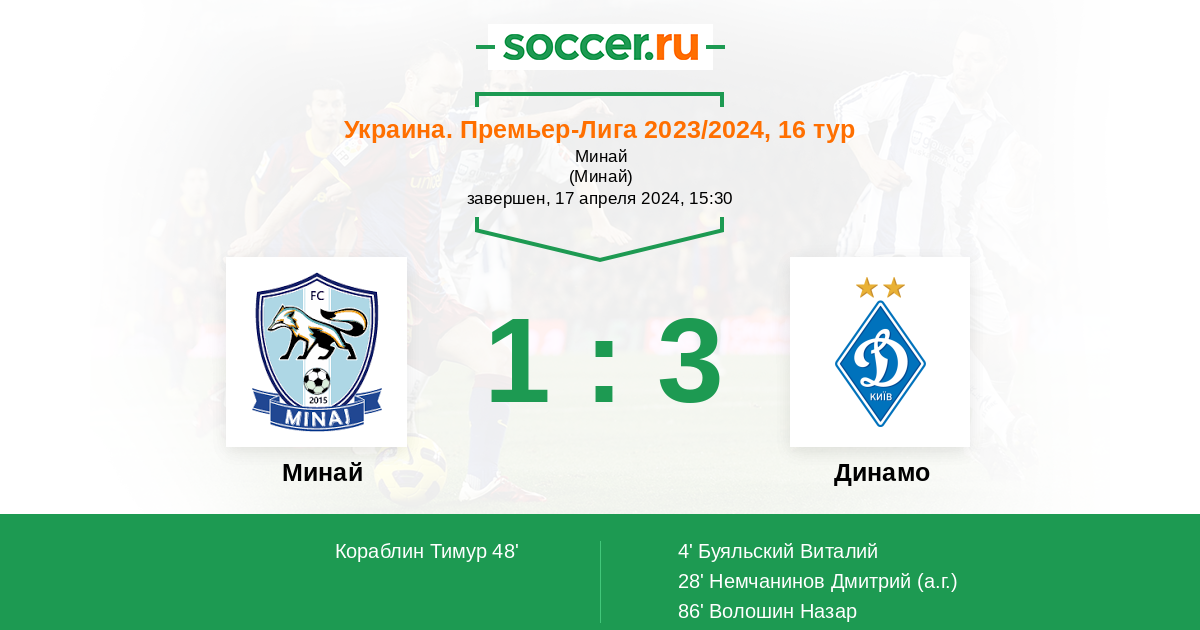 Минай - Динамо: обзор матча 17 апреля 2024