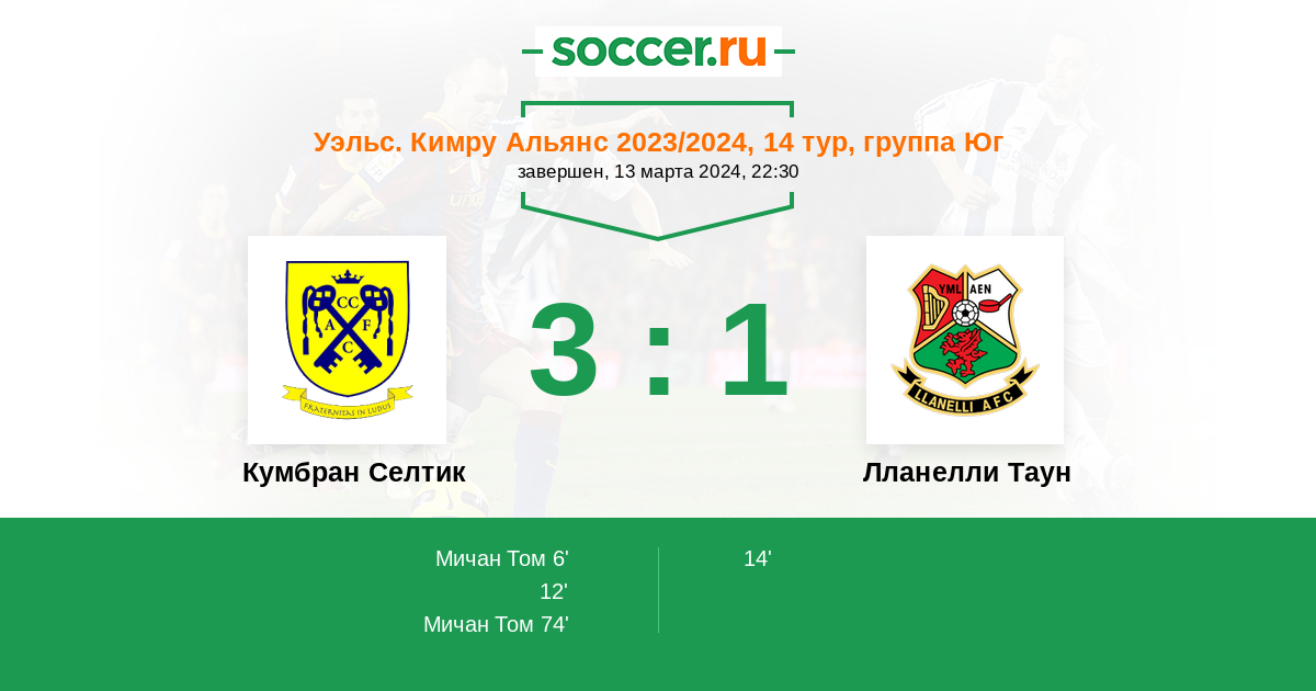 Кумбран Селтик - Лланелли Таун: обзор матча 13 марта 2024
