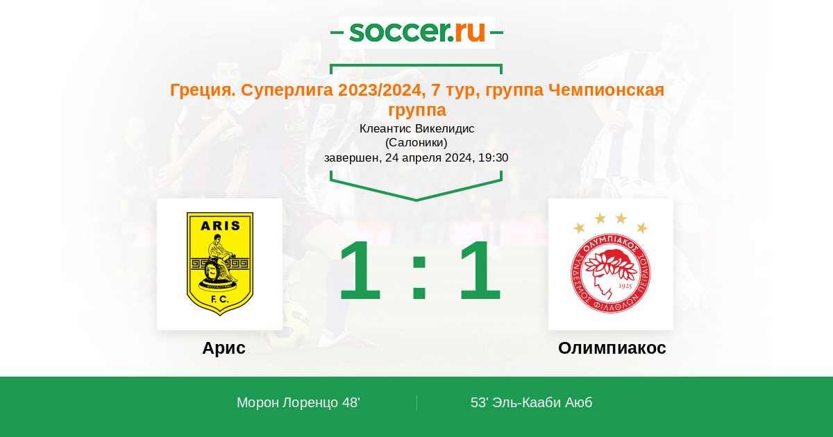 Арис - Олимпиакос: обзор матча 24 апреля 2024