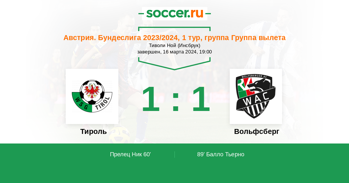 Тироль - Вольфсберг: обзор матча 16 марта 2024