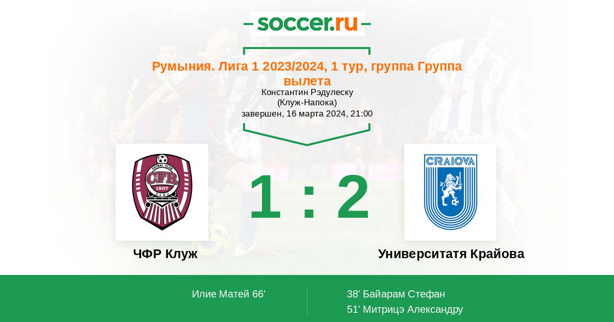 ЧФР Клуж - Университатя Крайова: обзор матча 16 марта 2024