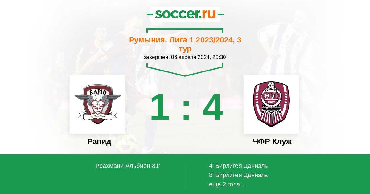 Рапид - ЧФР Клуж: обзор матча 6 апреля 2024