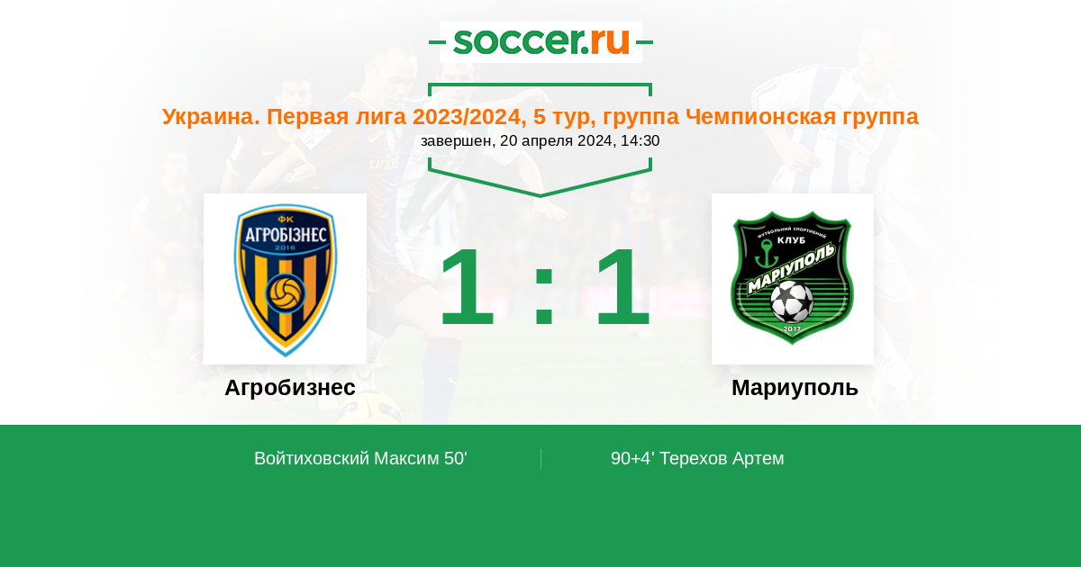 Агробизнес - Мариуполь: обзор матча 20 апреля 2024