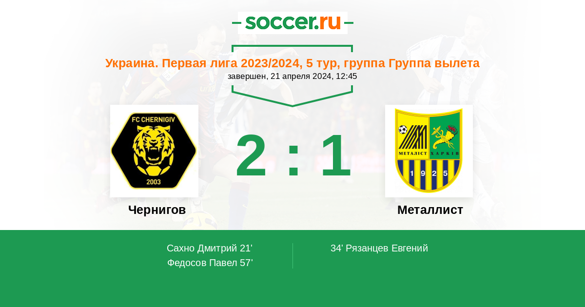 Чернигов - Металлист: обзор матча 21 апреля 2024