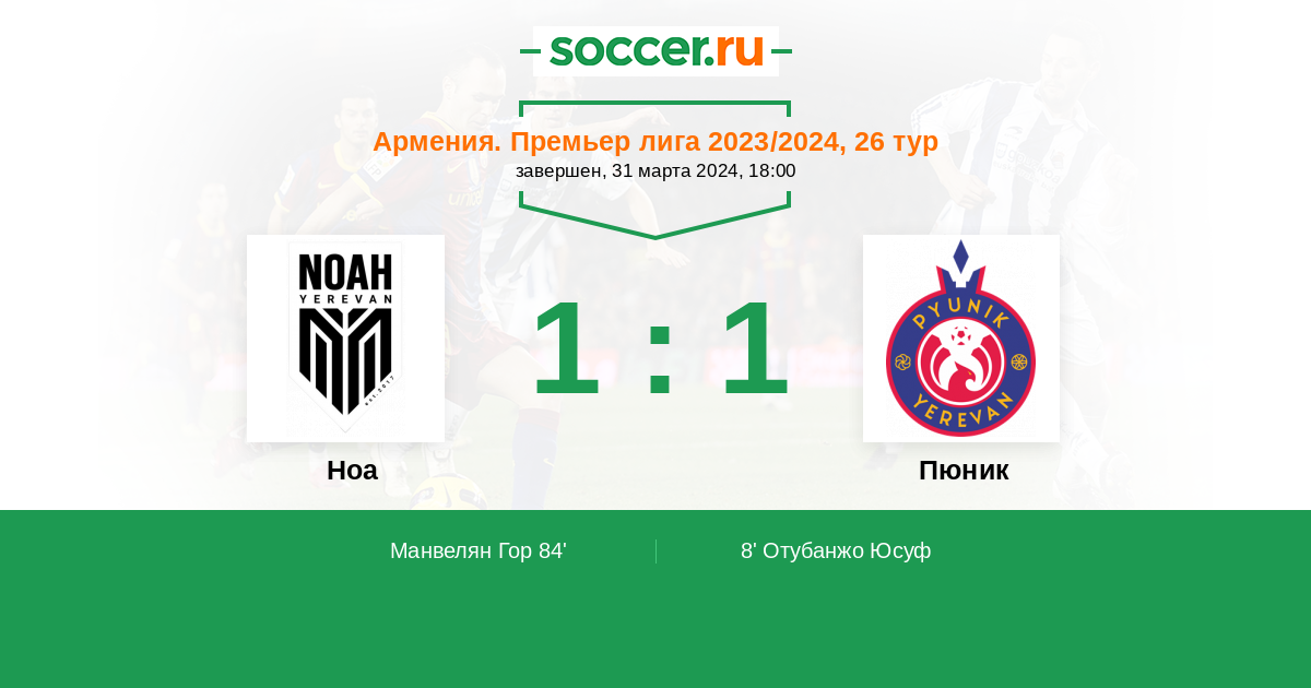 Ноа - Пюник: обзор матча 31 марта 2024