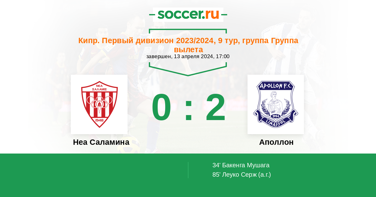 Неа Саламина - Аполлон: обзор матча 13 апреля 2024