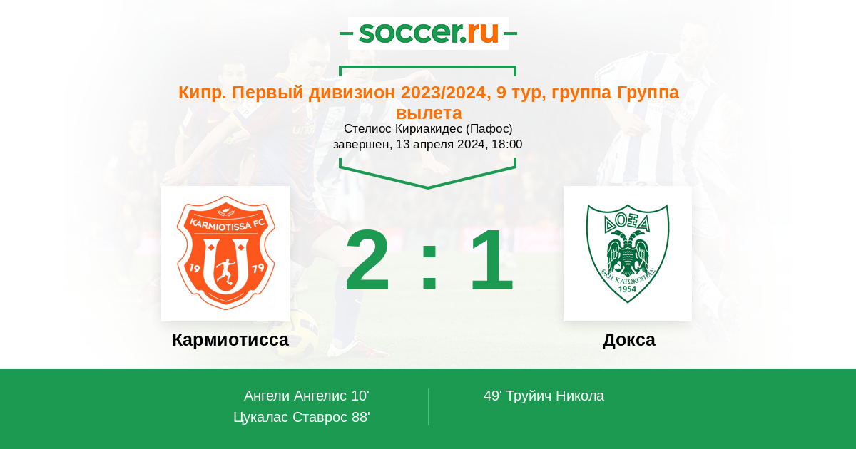Кармиотисса - Докса: обзор матча 13 апреля 2024