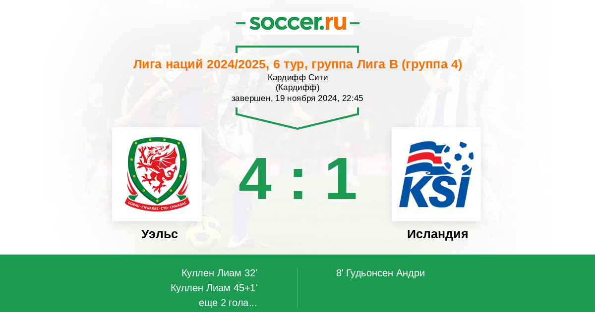Уэльс - Исландия: обзор матча 19 ноября 2024