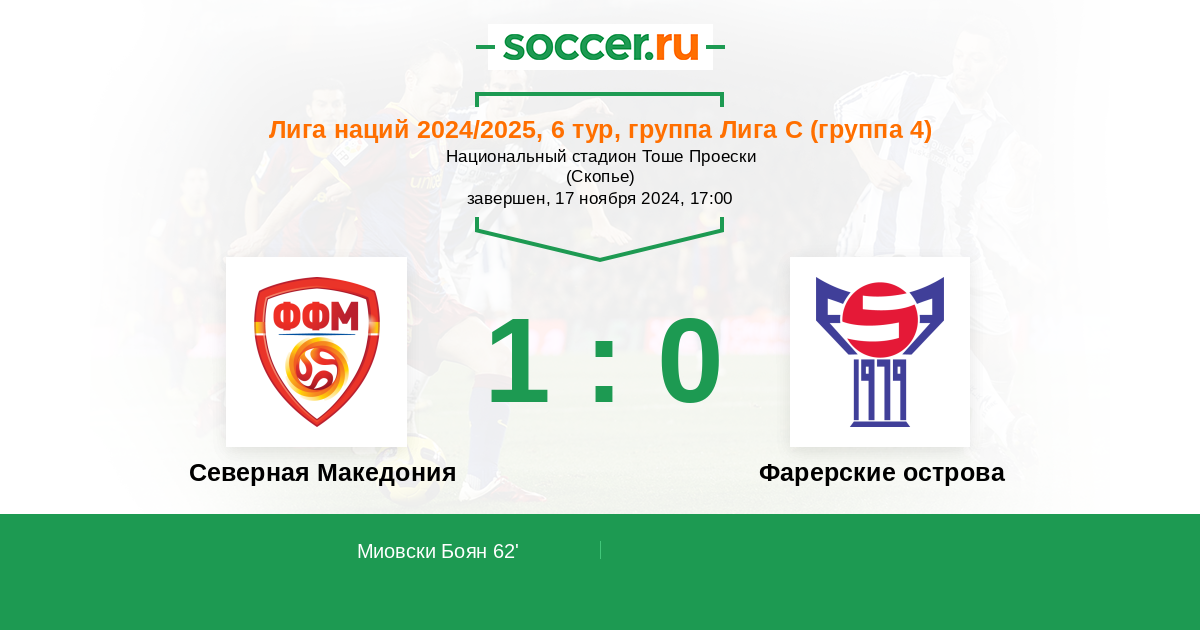 Северная Македония - Фарерские острова: обзор матча 17 ноября 2024