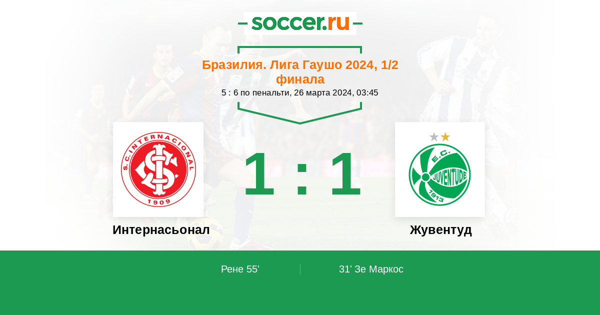 Интернасьонал - Жувентуд: обзор матча 26 марта 2024