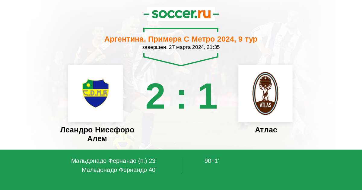 Леандро Нисефоро Алем - Атлас: обзор матча 27 марта 2024