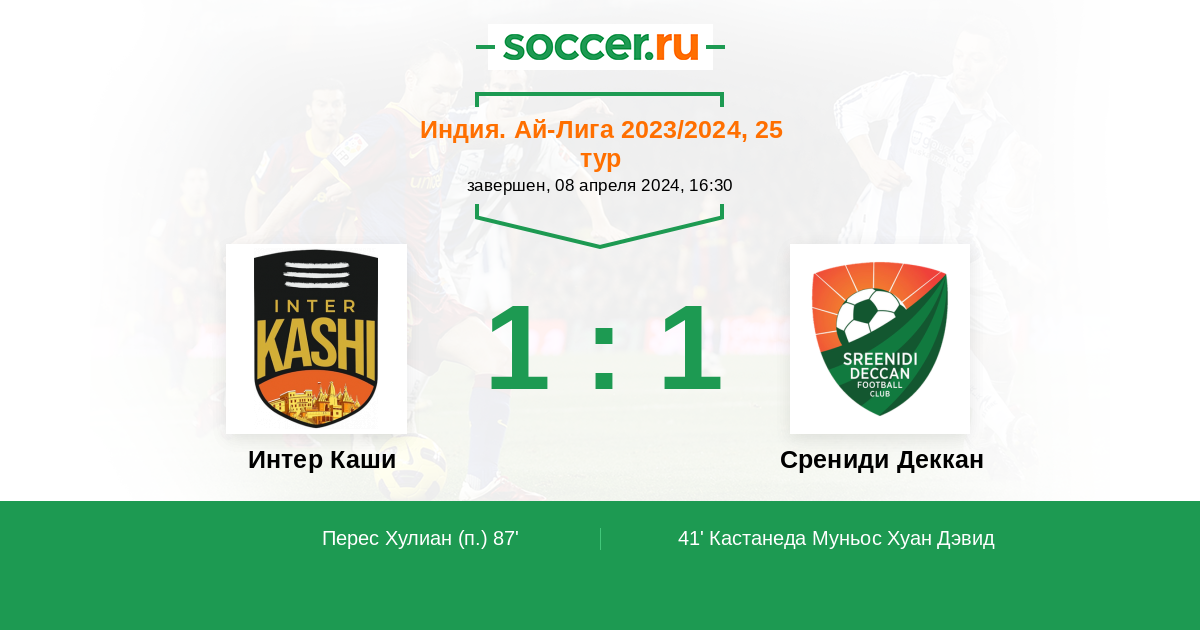 Интер Каши - Срениди Деккан: обзор матча 8 апреля 2024