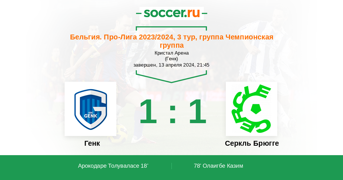 Генк - Серкль Брюгге: обзор матча 13 апреля 2024