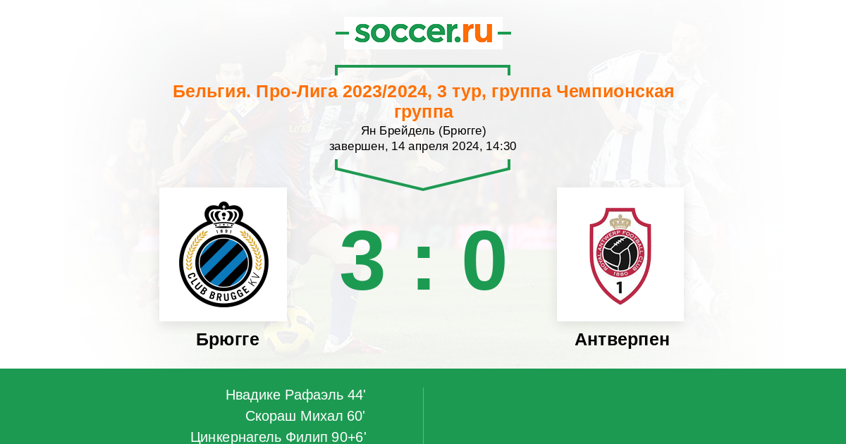 Брюгге - Антверпен: обзор матча 14 апреля 2024