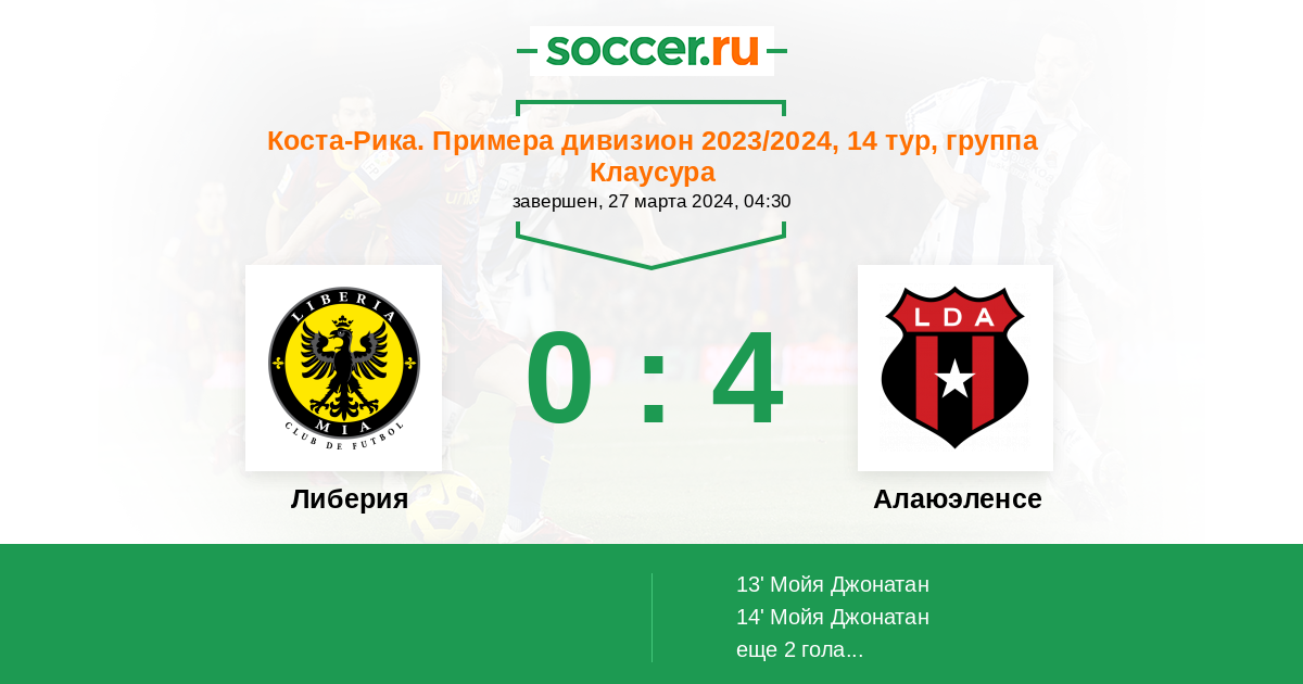 Либерия - Алаюэленсе: обзор матча 27 марта 2024