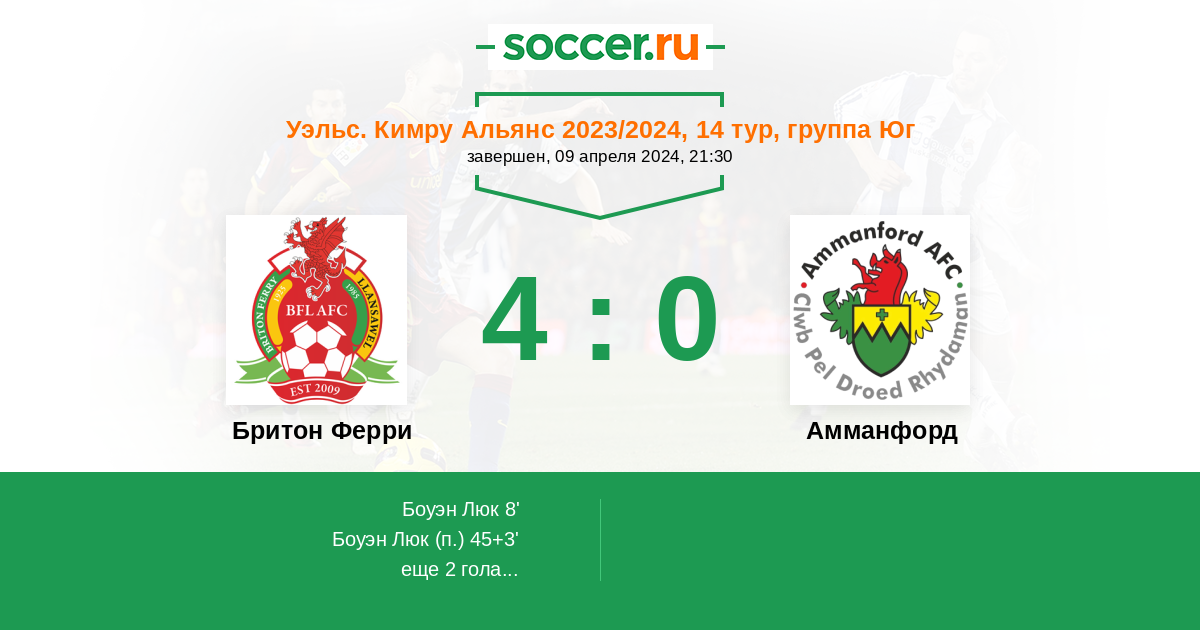 Бритон Ферри - Амманфорд: обзор матча 9 апреля 2024