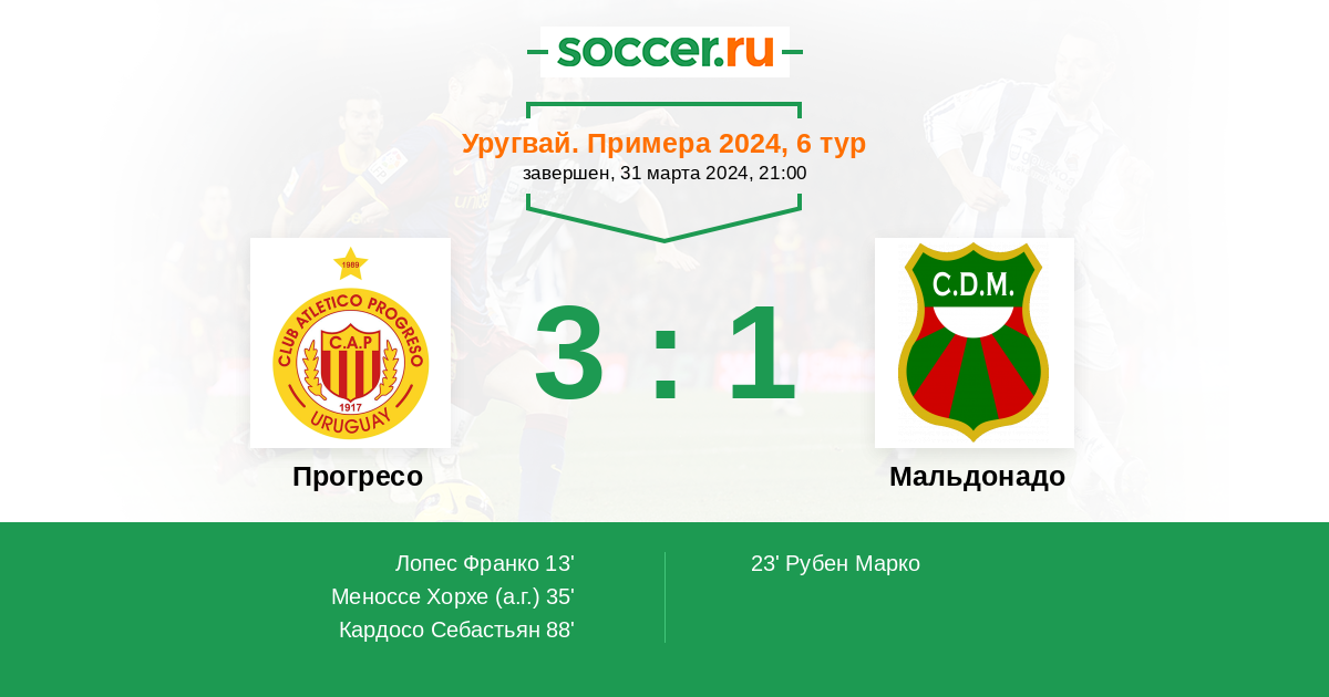 Прогресо - Мальдонадо: обзор матча 31 марта 2024