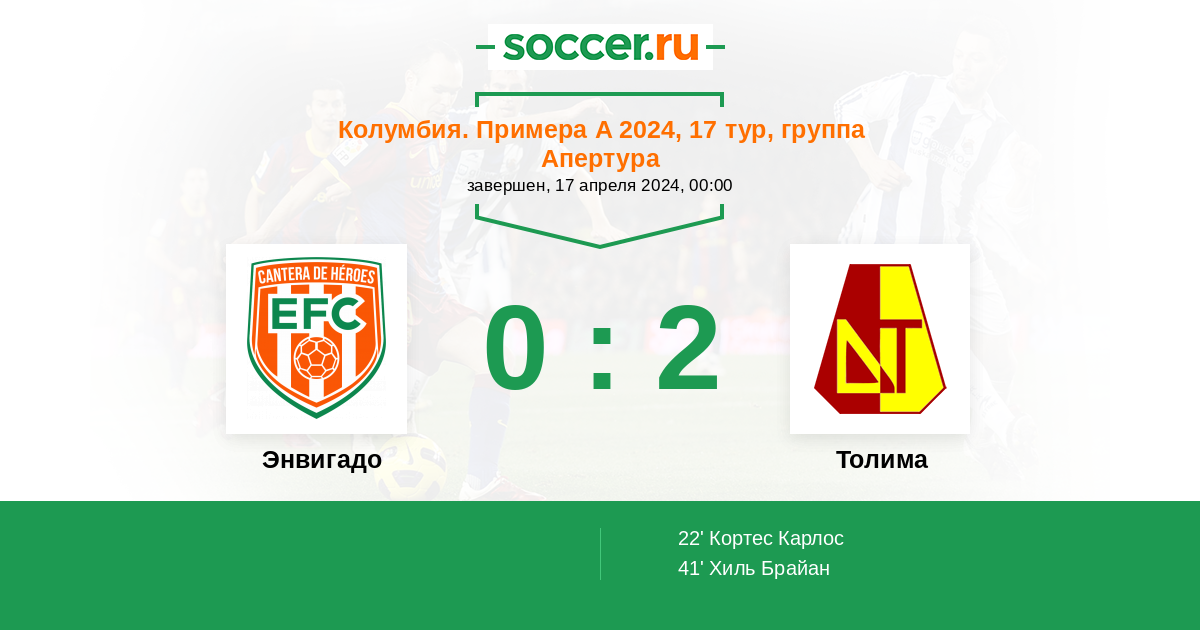 Энвигадо - Толима: обзор матча 17 апреля 2024