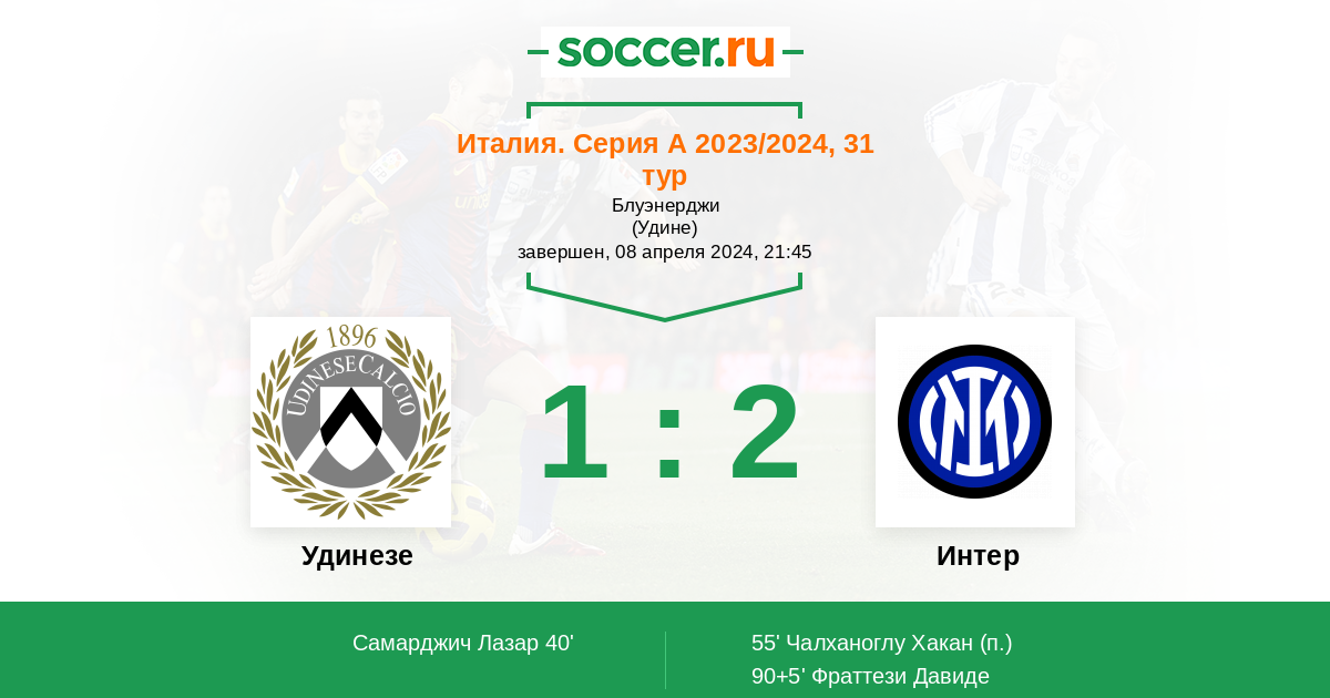 Удинезе - Интер: обзор матча 8 апреля 2024