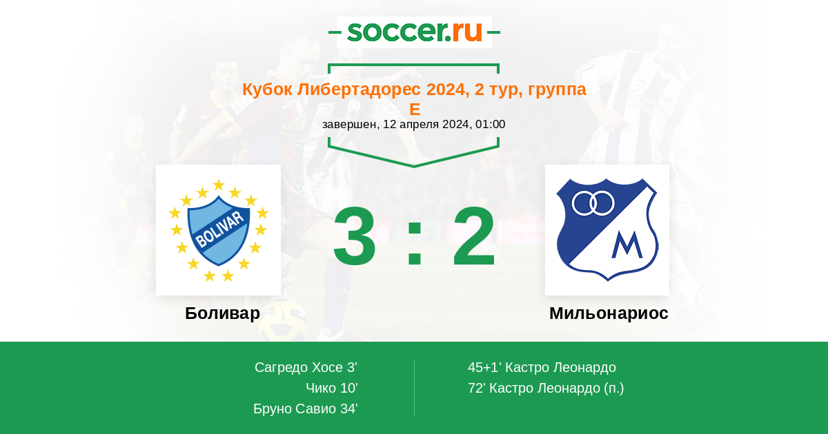 Боливар - Мильонариос: обзор матча 12 апреля 2024