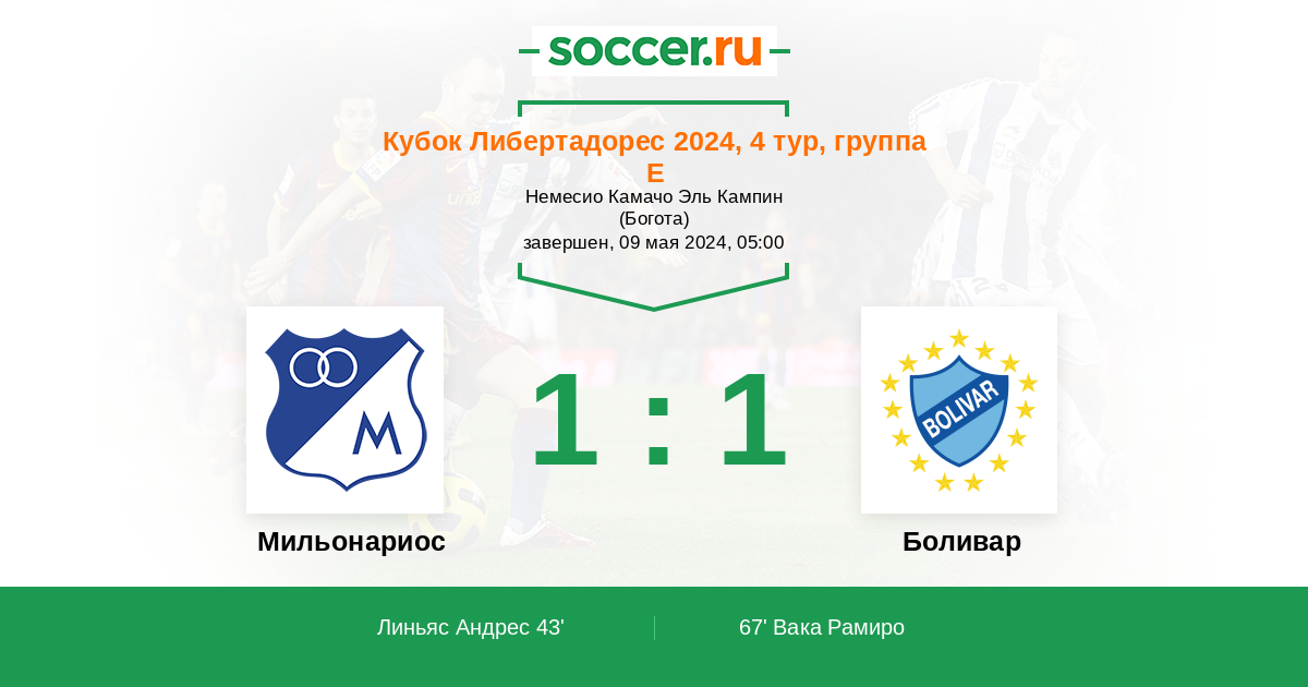 Мильонариос - Боливар: обзор матча 9 мая 2024