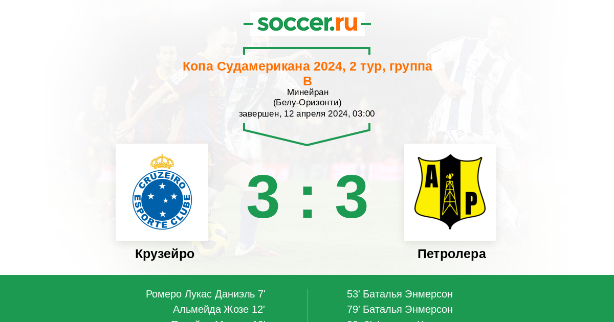 Крузейро - Петролера: обзор матча 12 апреля 2024