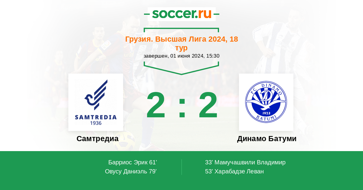Самтредиа - Динамо Батуми: обзор матча 1 июня 2024