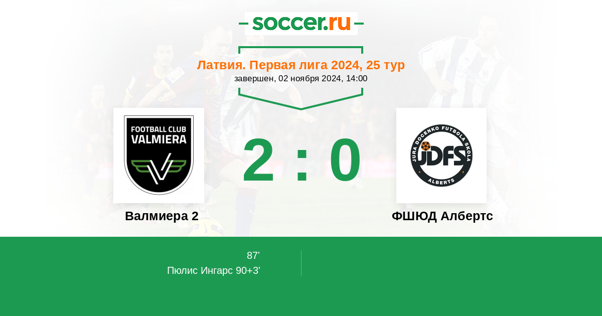 Валмиера 2 - ФШЮД Албертс: обзор матча 2 ноября 2024