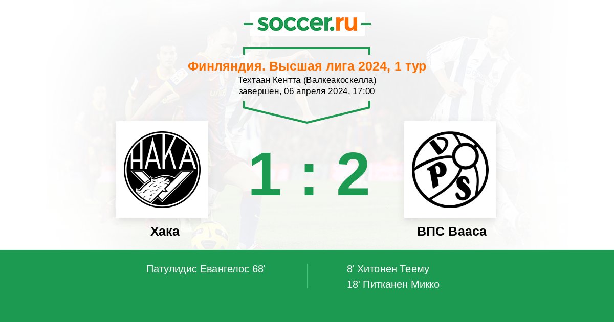 Хака - ВПС Вааса: обзор матча 6 апреля 2024