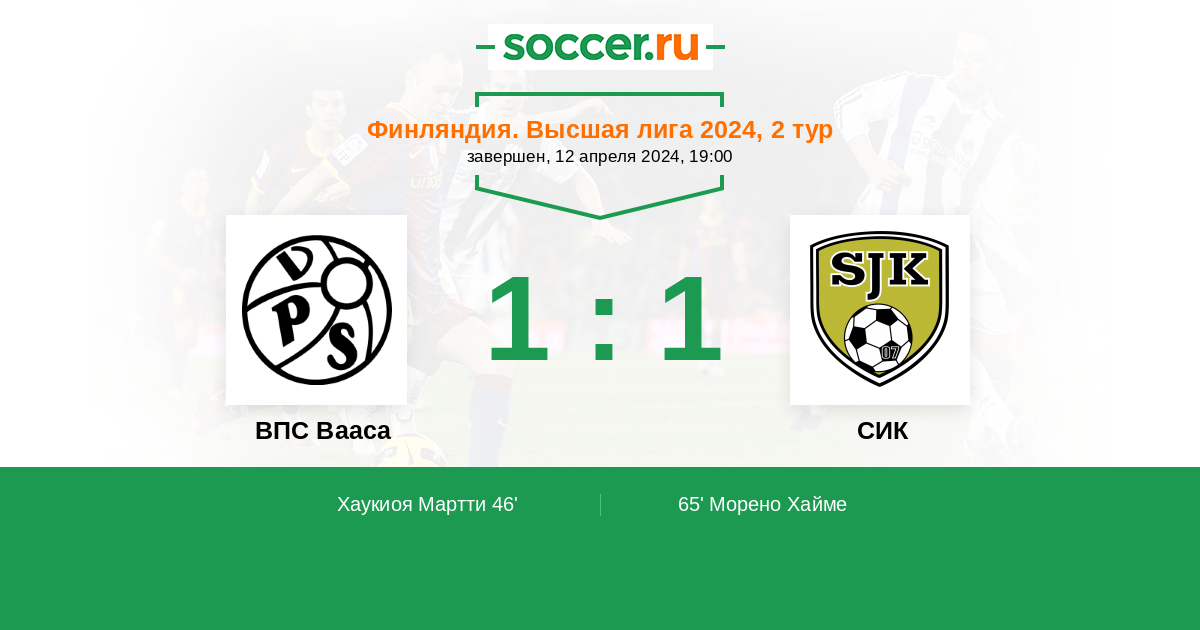 ВПС Вааса - СИК: обзор матча 12 апреля 2024