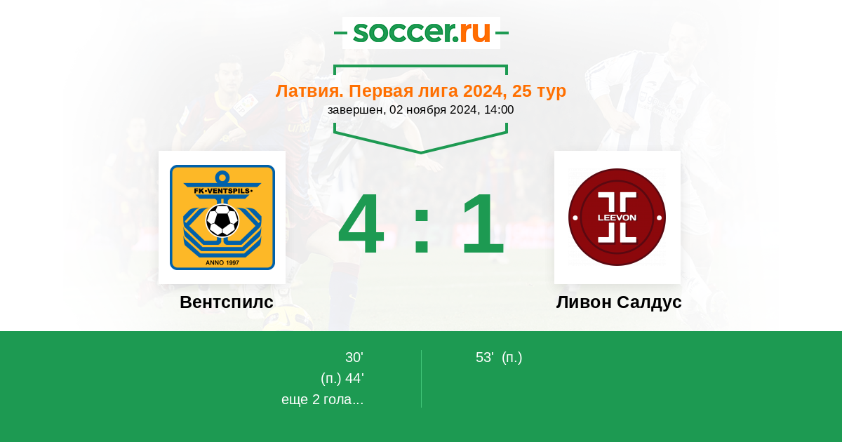 Вентспилс - Ливон Салдус: обзор матча 2 ноября 2024