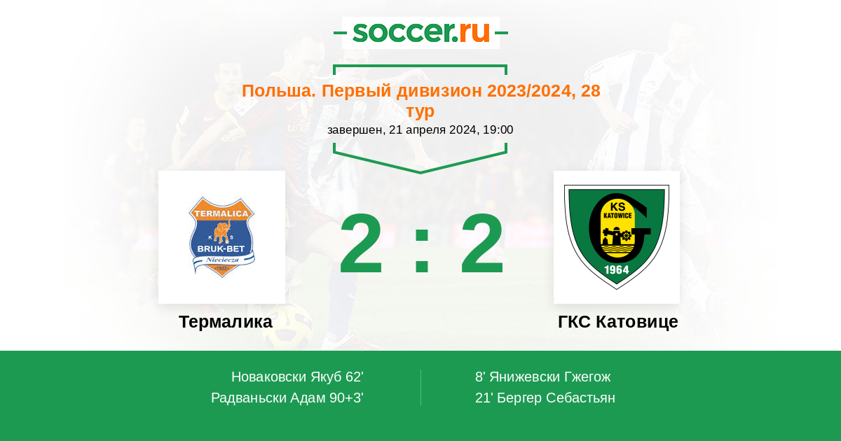Термалика - ГКС Катовице: обзор матча 21 апреля 2024