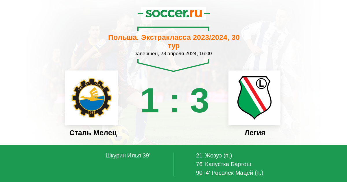 Сталь Мелец - Легия: обзор матча 28 апреля 2024