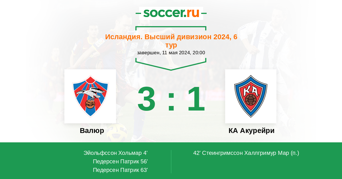 Валюр - КА Акурейри: обзор матча 11 мая 2024